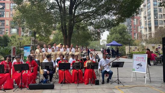 中信文化广场小区内,南城民乐队正在举办“红润南城夕阳红音乐会”。