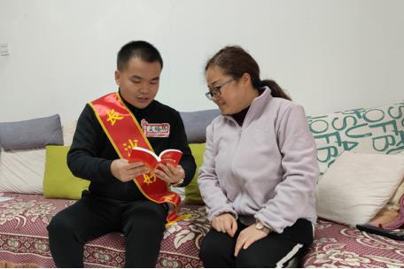 吴福赐走进居民家,送上了一本党的二十大报告。