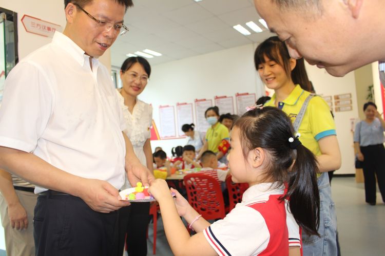 这一幕温馨的对话记录于2020年6月22日下午14:30分,当正在检查社区党建工作的区委书记周志凯同志经过白鹤咀社区党群服务中心的时候,看见一群孩子们正在参与泥塑公益活动,忍不住停下脚步来到他们身边,充满兴致地与孩子们交流起来。