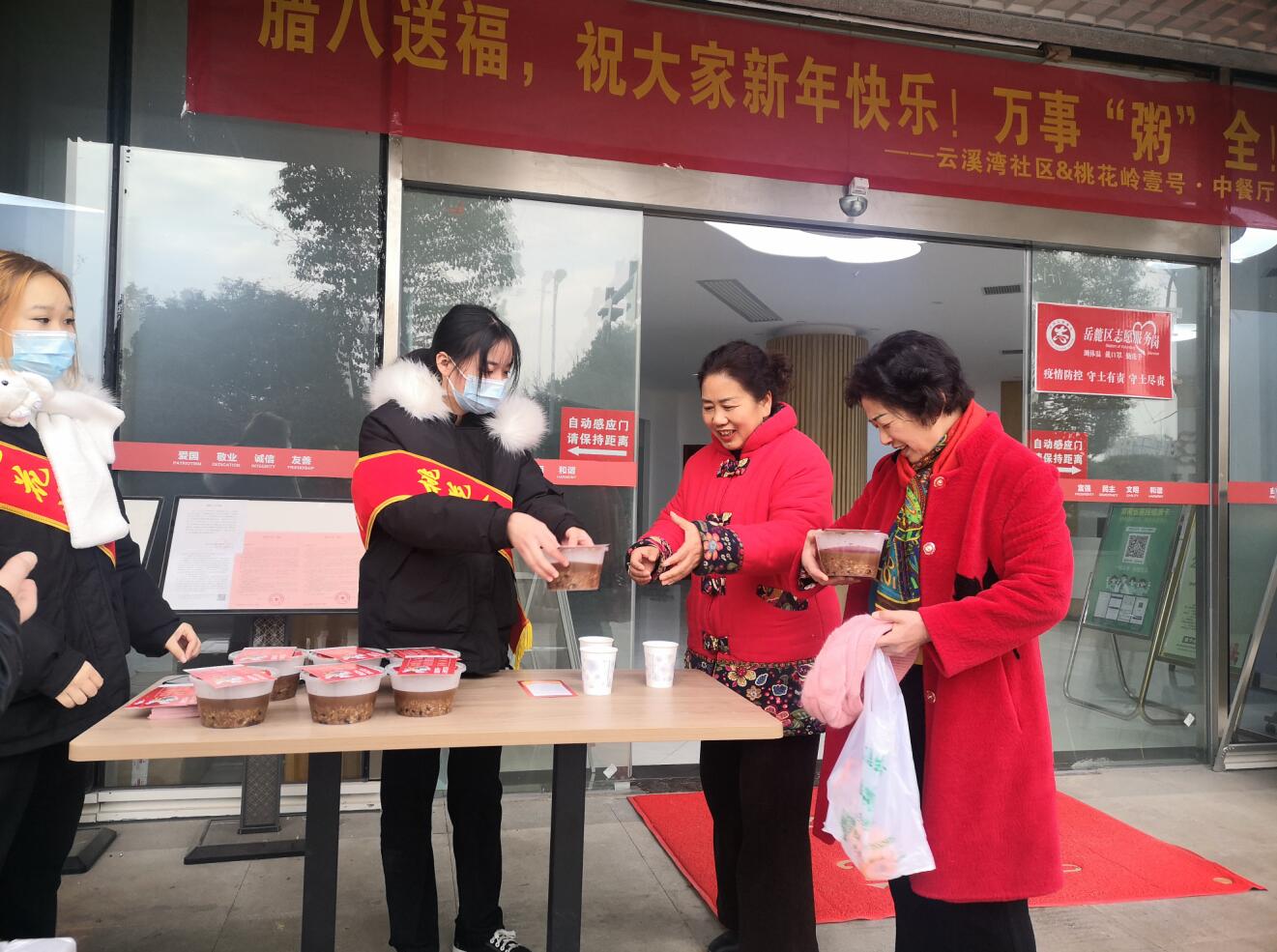 梅溪湖街道云溪湾社区携手桃花岭餐厅开展腊八送福活动