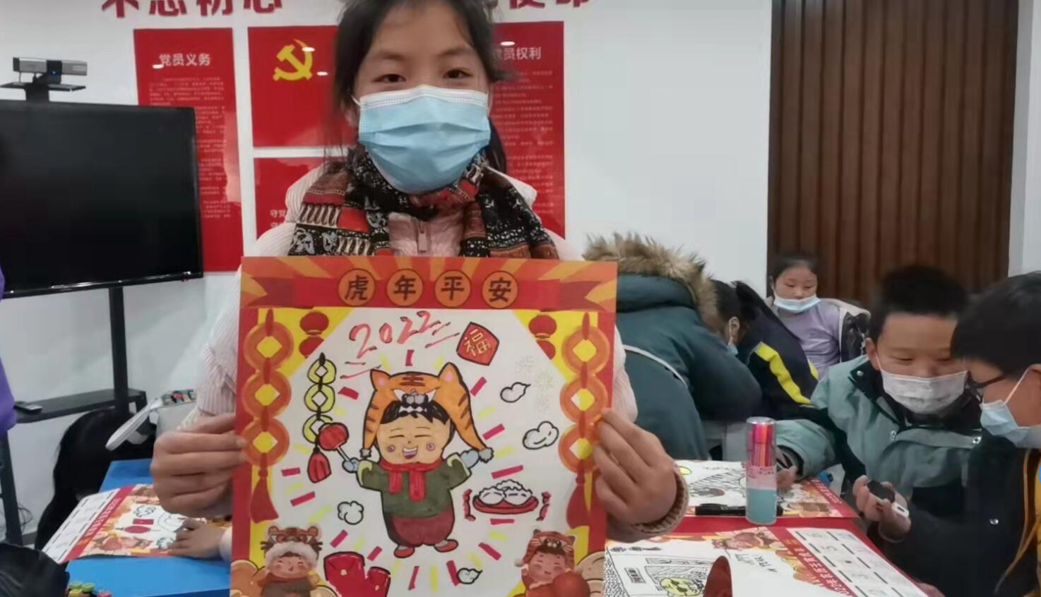 年历是时间的眼睛,它赋予我们的新的期待。精美的年历画作既蕴含着大家对新年的期望,同时也表达了大家对来年的祝福。“今年是虎年,我要在年历上画一只可爱的小老虎迎接新年的到来”,“过年都要放烟花,那我要在年历上画璀璨的烟花,热热闹闹的过新年”,“新年就是福到了,我要写上很多‘福’字“......活动现场,大家相互交流学习,发挥自己的想象力、创造力,紧扣“虎年年历”主题,利用手中的彩色画笔埋头认真的将自己对新年的印象、向往和憧憬融入手绘年历画中。不一会,一幅幅色彩艳丽,年味十足的新年年历画作呈现在大家面前,画作承载着孩子们对新年的祝福和希望,围观的家长们看着构思新颖、栩栩如生画作忍不住连连赞叹,都表示会好好收藏,整个活动会场弥漫着温馨欢快的气氛。
