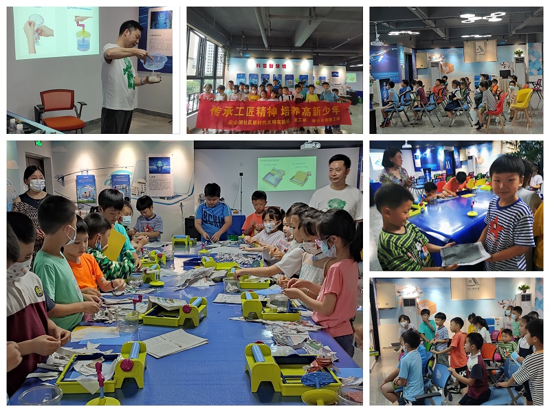 6月18日上午十点,尖山湖社区青少年创客工坊带领辖区30余名少年儿童们体验了国家级非物质文化遗产项目——扎染技艺。
