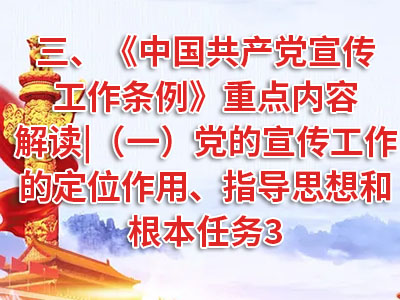 三、《中国共产党宣传工作条例》重点内容解读|(一)党的宣传工作的定位作用、指导思想和根本任务3