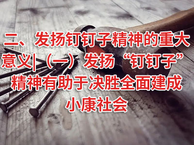 二、发扬钉钉子精神的重大意义|(一)发扬“钉钉子”精神有助于决胜全面建成小康社会