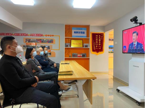 先锋街道新宇社区组织党员群众集中收看开幕会。