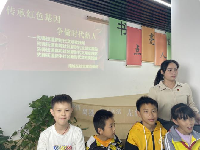为学习宣传贯彻党的二十大精神,引导广大青少年始终不渝听党话、感党恩、跟党走,10月18日中午先锋街道新时代文明实践所以“传承红色基因 争做时代新人”为主题,邀请党员志愿者做客南城社区党建直播间“特别企划”栏目,向辖区青少年分享红色书籍中的动人故事。