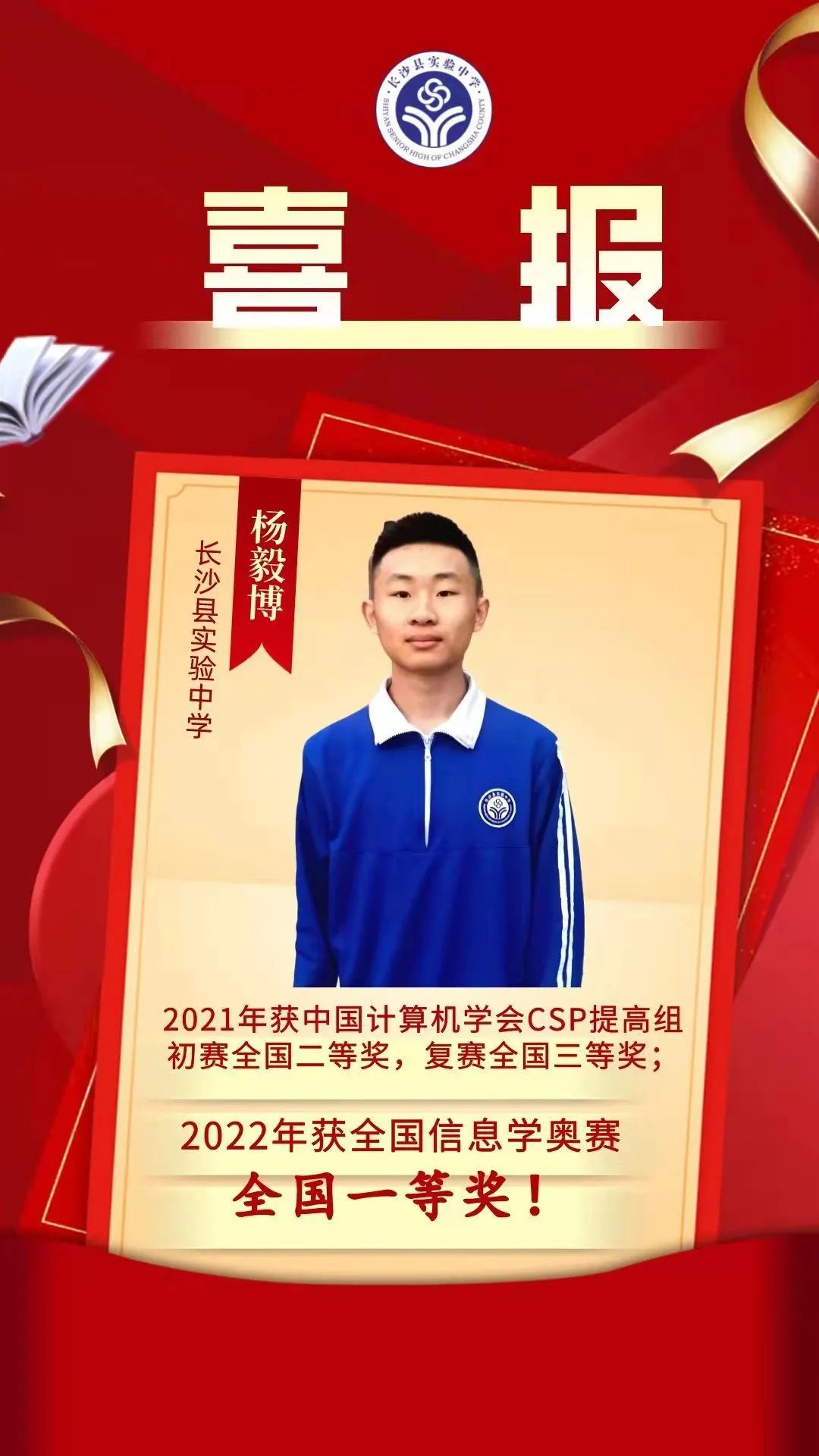 “信息学奥赛是数理化生信五大学科奥赛之一,奖项含金量高。近十年,长沙县在五大奥赛中还未获得过全国联赛一等奖。此次杨毅博获奖,是‘五好’教育工程实施以来取得的显著成果。”12月16日下午,在长沙县举行的2022年度“党建聚合力书记领航行动”创新项目“擂台比武”大会上,长沙经开区党工委书记、长沙县委书记付旭明点赞杨毅博。