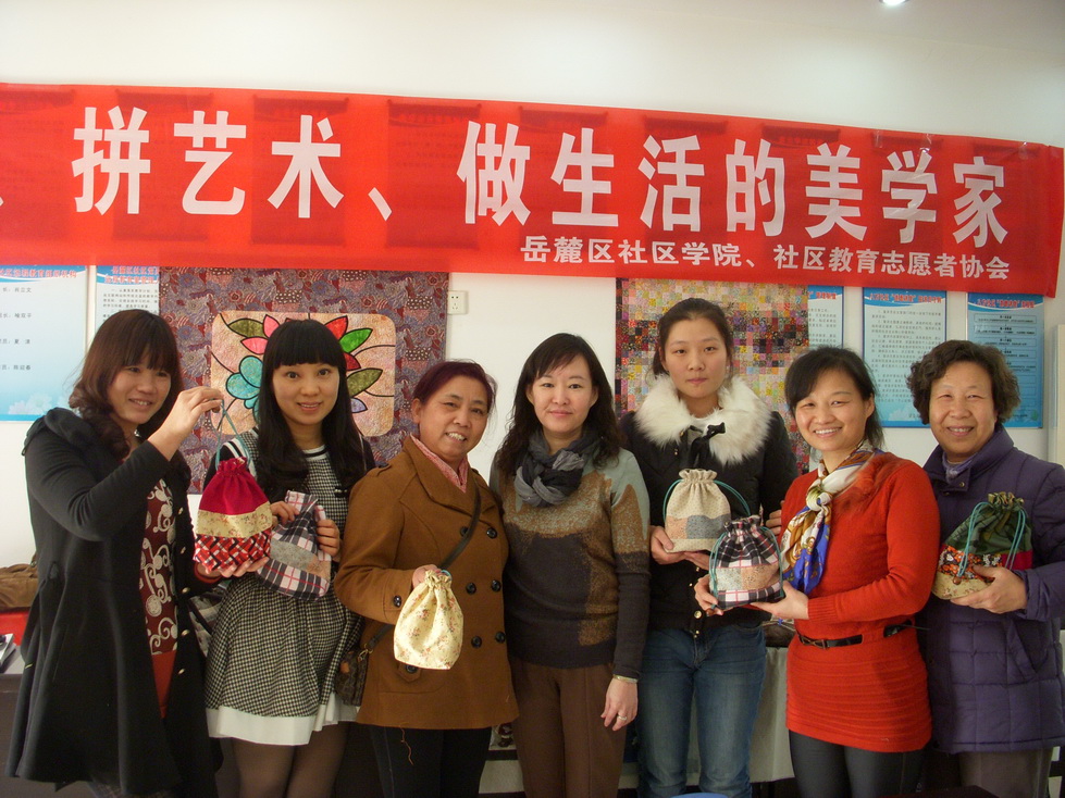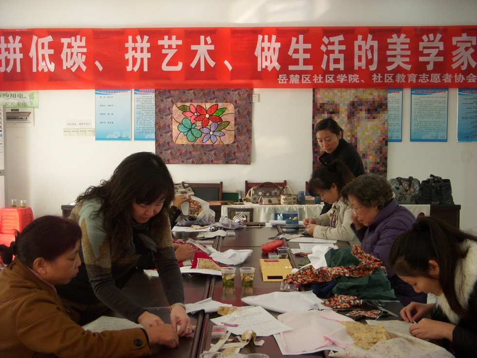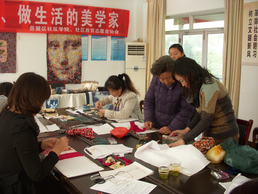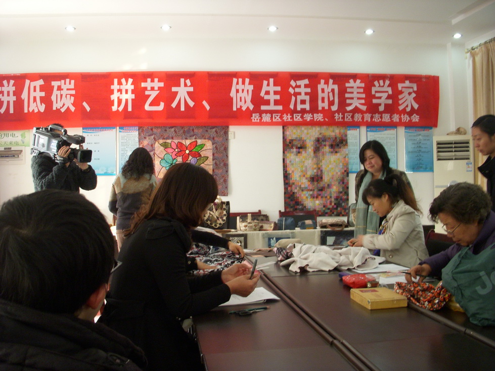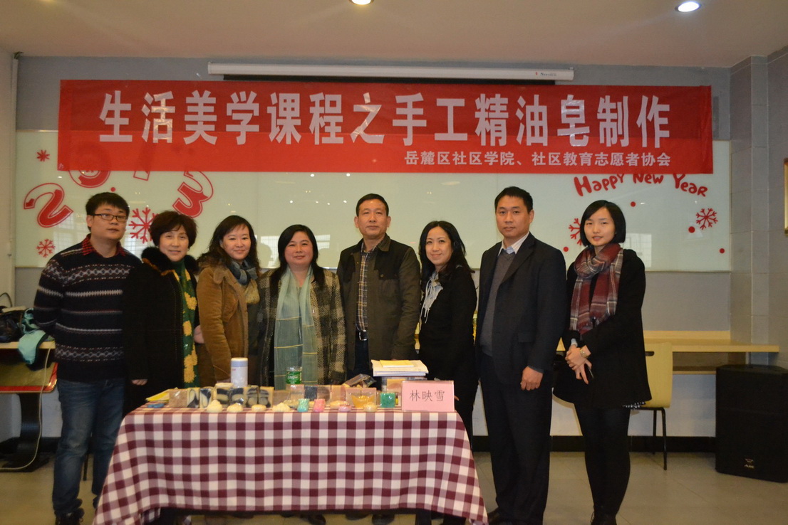 为率先建成全面小康之市、两型引领之市、秀美幸福之市,提升社区居民生活质量与审美情操,岳麓区志愿者协会从台湾请来拼布艺术指导老师陈香伶和手工皂指导老师林映雪于12月7日和8日在望岳街道八方社区学校、望月湖街道社区学校、西湖街道社区学校分别上了两堂精彩的生活美学课程---拼布艺术和手工精油皂,广泛传播了创意生活美学的主题思想,发挥了居民的才能和智慧,带动了全社会关注环保节能节俭问题。长沙市社区大学林涛书记、岳麓区社区学院杨登老师、长沙晚报、长沙新闻频道记者在岳麓区社区教育志愿者协会李萍会长和刘大梅秘书长的带领下现场观摩活动,两天4堂课程共55位社区居民参与学习。