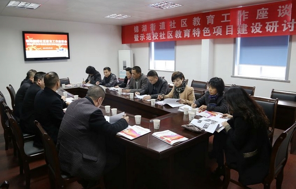 3月4日下午,锦湖街道在社区学校展开社区教育工作座谈会,商讨、部署2014年工作,就如何创建全国学习型示范街道集思广益。来自街道各条线的负责人、街道党工委宣传委员王法琼、人武部长黄其志 依托校瑞安市职业中专教育集团学校校长谢炳冲、锦湖社区学校林良爽等参加会议。座谈会特邀瑞安市社区教育工作领导小组办公室副主任池万村。会议由街道社区教育工作领导小组办公室主任林国杰主持。