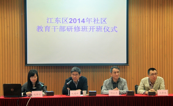 收藏为进一步提升江东区社区教育工作者的专业水平,打造一支高素质的社区教育工作者队伍,4月23日—24日,由江东区社区教育委员会指导办公室主办、江东区社区学院与宁波市宁报培训中心联合组办的江东区2014年社区教育干部研修班在报业集团报告厅顺利举行。江东区社区教育委员会办公室副主任、江东区教育局副局长仇建辉、职成教科科长赵静波、社区学院常务副院长何小平、宁报培训中心主任王景波出席开班仪式,来自全区各街道社区的近70位社区教育工作者参加了为期两天的集中培训。