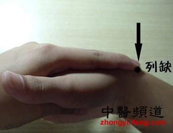 列缺穴:补肺益肾 两手虎口交叉相握,这时左手食指是在右腕的背部,而食指尖下就是列缺穴。此穴位于三经交会处,因此不仅对于肺经,还对大肠经和任脉的经气都具有调节作用。 很多时候,我们会因为偶感风寒而引起难以名状的头痛,这时就可以通过按揉列缺穴来疏卫解表,还可以结合热毛巾敷额头的方式一起进行。 列缺穴补肺益肾的功效还来源于其与任脉连接,任脉本身就是“阳脉之海”,可以补肺肾之阴虚。因此,列缺穴也沿袭了任脉的作用,对于肾阴不足引起的糖尿病、耳鸣、眼睛干涩等症有很好的调节作用。