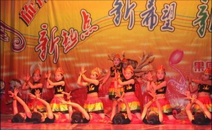 8点整,中心小学8名艺术特长的小演员们和着热情的歌声,踩着欢快的旋律,跳起火辣的《拉丁风情》舞,文艺汇演拉开了帷幕。30个节目轮番上演:民族舞、啦啦操、现代舞舞动了青春;民族唱、京剧好戏连台;架子鼓、二胡秀秀出了风采;话剧、情景剧句句精彩。历时近四个小时,大礼堂内欢声阵阵、笑语连连,节拍声、掌声此起彼伏,整个会场成了一片欢腾的海洋。最后,中心小学二年级学生谭汀镝动感十足的架子鼓、中心小学彭佳丽老师、田汉小学寻觅老师美妙动人的歌声为此次活动划上了圆满句号。