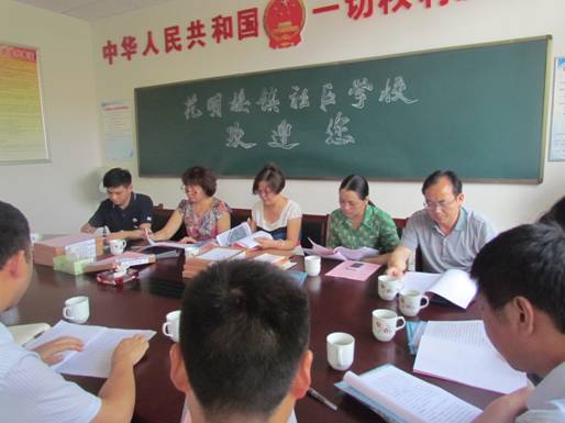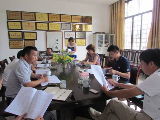专家组一行在宁乡县沩山乡社区学校听取申报情况汇报