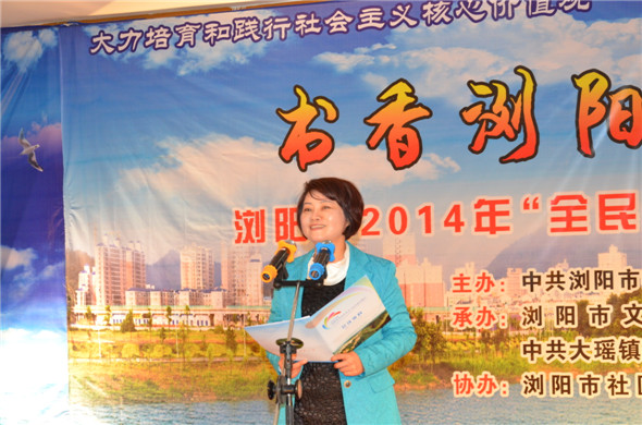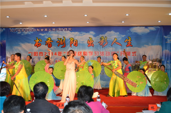 今年浏阳市全民终身学习活动周的主题是“书香浏阳,出彩人生”。开幕式活动分三个流程,一是参观大瑶镇社区学校、中国花炮博物馆、李畋庙及浏阳市社区教育成果展,二是观看市社区学院和大瑶镇社区学校学员们的文艺节目汇报演出,三是启动仪式。