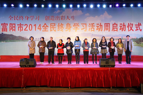 启动仪式上,表彰了富阳市10个示范社区学习共同体、15个学习型社区和200户学习型家庭。部分社区教育中心和社区教育学校选送的学习共同体进行了风采展示,表演了自编自导的精彩文体节目,既有阳春白雪,又有草根民俗,赢得了全场的一致好评。市领导还向市民代表赠送了富阳社区教育系列读本《说健康谈养生》和《茶语生活》。