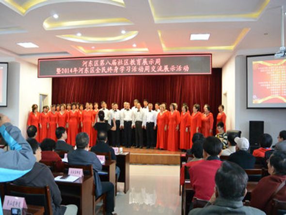 收藏11月4日上午“河东区第八届社区教育展示周暨2014年河东区全民终身学习周交流展示活动”在河东社区学院报告厅隆重召开。出席活动的领导有河东区副区长、区社区教育工作委员会副主任张庆岩,河东区教育局局长、区社区教育办公室主任郑庆东,河东区社区学院院长张家俊。参加活动的还有各街道社区教育工作分管主任、文教科长、教育局成教科科长、社区居委会主任、社区教师代表,获奖代表等200余人。河东区社区教育办公室副主任刘培霞主持活动。