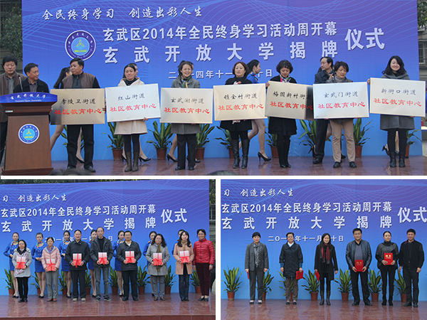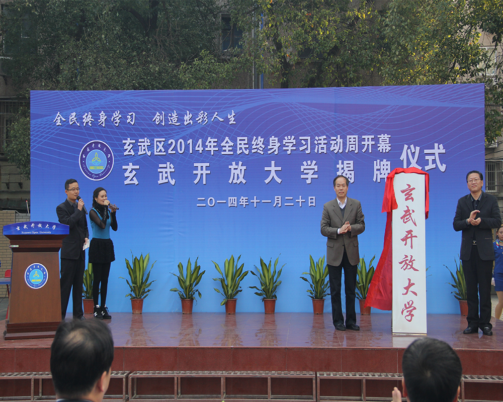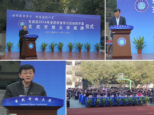 收藏11月20日下午,玄武区在玄武开放大学举办了2014年全民终身学习活动周开幕暨玄武开放大学揭牌仪式,南京市教育局副局长潘东标、职业教育与社会教育处调研员王广礼、南京开放大学校长夏桂松、副校长秦怀建、玄武区人民政府副区长蒋兆全、区教育局局长李玉鹏、副局长戴继根、全区各街道分管书记、社会资源单位(联合办学单位、社区教育共同体单位)代表、社区居民代表以及玄武开放大学师生代表共600多人参加了仪式活动。