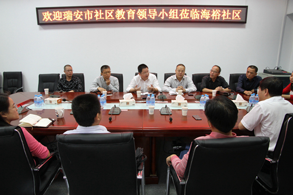 考察的第二站是新安街道海裕社区。团员们参观海裕社区服务中心,社区工作人员边走遍介绍,把社区的亮点和特色做了一一介绍。在交流会上,海裕社区工作人员做了《全面推进社区教育,促进社会》社区教育的做法。随后,宝安区职业能力开发局副局长刘益民等领导赶来海裕社区,向考察团介绍宝安区社区教育的总体情况和具体做法。宝安区在全国成立独一无二的职业能力开发局,统领素质教育培训。年经费在五六千万。社区教育归口职业能力开发局,而不是教育局,这在全国也是唯一的。这是宝安社区教育的一个特色。