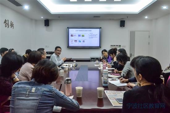 在交流中,何小平副院长对青岛市北区同仁的到来表示热烈地欢迎。接着,马任副院长作了江东区社区教育数字化发展情况的介绍。他从区社区教育数字化发展的背景出发,围绕数字化环境建设和软件建设,详细介绍了荣获数字化学习先行区以来,社区教育数字化建设的基本经验,充分展示了我区打造“一核三翼”、交互化、社交化、移动化为特色的数字化学习平台。针对当前讨论热烈的社区教育微课程,马院长从微课程建设的概念、分类、标准等方面,交流了江东的特色实践情况。之后,白鹤街道教育助理许佳,围绕课程奠基、团队渗透、平台支撑三个方面,介绍了街道“三合一”数字化学习网的打造。双方就如何建设具有区域特色的社区教育微课程体系进行了深入交流。
