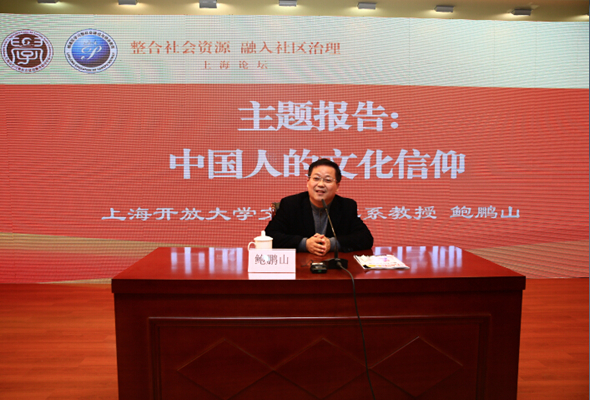 最后,上海开放大学文学艺术系教授鲍鹏山作了题为“中国人的文化信仰”的主题报告,介绍了中国人相信人性本善,从人性善出发,确立人的向善本能,保护并诱导人性向善,从而确立了中国道德的基础等内容。