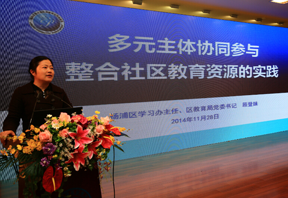 杨浦区学习办主任、区教育局党委书记顾登妹以《多元主体协同参与,整合社区教育资源的实践》为主题,介绍了杨浦区根据区位优势,创新合作载体,盘活高校资源,为市民创造了更多的学习机会的实践经验,并请各区县参观了杨浦区的全国社区教育i-数码体验学习基地,现场观看了杨浦社区教育宣传短片。