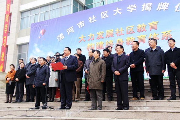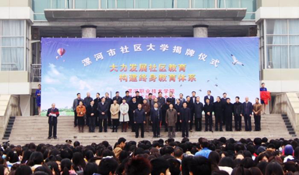 仪式上,漯河市政府副秘书长杨智勇代表市政府宣读漯河市社区大学成立文件。漯河市社区大学2014年经漯河市人民政府批准,由漯河职业技术学院依托漯河广播电视大学成立。漯河市社区大学是一所新型、面向全体市民、旨在提高市民综合素质和文化水平的社会化、开放式学校,是传统大学和现代市民教育、社区教育的有效结合,主要负责全市社区教育的整体教学与管理。
