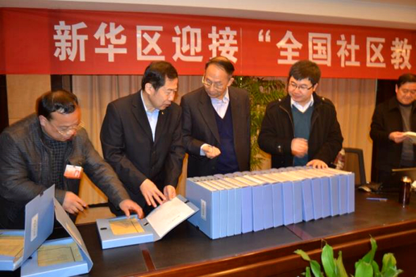 上午举行了汇报会,会上新华区委书记董汉生同志代表区委、区政府对谢国东组长一行表示热烈欢迎,简要介绍了新华区的基本情况及重视开展社区教育工作情况。谢国东组长对本次调研内容及目的进行了重要讲话。在看完社区教育工作专题片后,区委副书记、区长徐延杰就新华区社区教育工作进行了汇报。随后召开了座谈会。听取了社区教育学院、社会教育学校、社区居民全国百姓学习之星等代表就对社区教育发展的意见和建议进行了座谈。座谈结束后,临近中午还对社区教育工作资料进行了详细查阅。