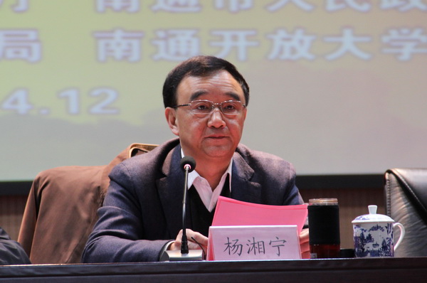 收藏12月16日上午,2014年江苏省暨南通市“全民终身学习活动周”开幕式在我校举行。活动周以提高市民素质,提升城市品质,弘扬社会主义核心价值观,促进人与社会全面发展为目标,大力宣传终身学习理念,创新终身学习方式,推进全民终身教育体系和学习型社会建设。江苏省教育厅厅长沈健、副厅长杨湘宁、南通市委常委、宣传部部长章树山、南通市政府副秘书长陆善平、江苏开放大学党委书记彭坤明、副校长张益彬、南通市教育局局长郭毅浩、南通开放大学党委书记刘启东、校长张建锋以及南通市教育局、南通市开放大学的相关领导出席,省教育厅、省民政厅、省人社厅、省发改委相关部门的负责人应邀出席,来自全省各市及各县(市、区)教育局分管负责同志、南通市民代表参加开幕式。省教育厅副厅长杨湘宁主持开幕式。