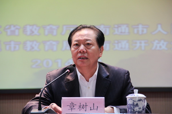 南通市委常委、宣传部部长章树山致辞。章部长说,南通素有崇文重教的优良传统,是全国著名的“教育之乡”。近年来,市委、市政府坚持把优先发展教育摆在重要的战略位置,围绕建设教育强市、率先实现教育现代化的目标,深化教育改革,提高教育质量,促进教育公平,推动了基础教育、职业教育、高等教育等各项教育事业持续协调发展,终身教育体系基本形成并不断完善。南通先后成为国家教育体制改革试点地区、江苏教育现代化市级示范区建设单位。章部长表示,将以此次省市全民终身学习活动周为契机,按照教育部和省教育厅的部署,大力推进终身教育体系和学习型社会建设,努力构建全民终身学习的公共服务体系和数字化服务平台,满足不同群体多样化的学习需求,提高全民素质,提升人民幸福指数,让学习成为南通百姓的生活新风尚,为创建富有南通特色的学习型城市,建设美丽幸福的南通作出积极贡献。