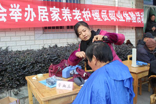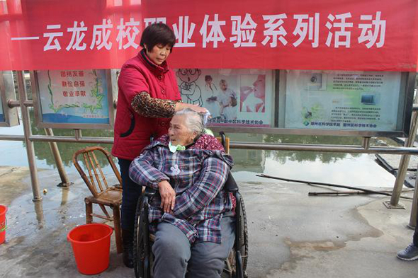 收藏 据悉,云龙镇在册60岁以上老年人达6570人,其中,80岁以上高龄老人966人。不少老人不仅无人照顾,而且备感孤独。2014年12月26日下午,鄞州云龙成校“关爱老人 感动生活——养老护理员职业体验系列活动”在云龙镇顿岙村举办,在这次活动中,由经过云龙成校养老护理员培训后并取得初级养老护理员职业资格证书的以及从事护理事业多年的人员的用专业的养老护理知识和真挚的爱心去服务照顾老人,与老人度过了一个愉快的下午。