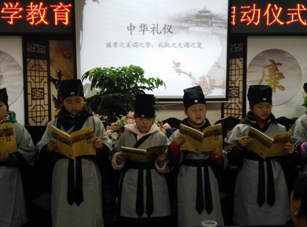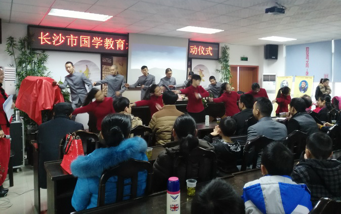 参加仪式的岳麓区人民政府副区长李舜随后做了热情洋溢的讲话,充分肯定了社区在国学教育经典诵读先行先试,敢于创新的工作作风,并对中华文化走进社区、走进居民家庭改善社区文明风尚寄予厚望。社区党总支书记罗信凯做了热情洋溢的欢迎词。社区的孩子们身穿汉服,现场向老师学习了站立礼、鞠躬礼、抱拳礼等中华传统礼仪文化,并诵读了传统经典《弟子规》。