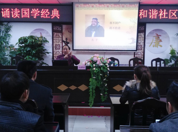 为全面落实习总书记倡导的“深入挖掘和阐发中华优秀传统文化讲仁爱、守诚信、崇正义、求大同的时代价值,使中华优秀传统文化成为涵养社会主义核心价值观的重要源泉。”11月28日,望城坡街道社区学校联合长华社区举办了诵读国学经典,构建和谐社区启动仪式。