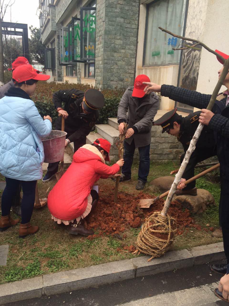 来自辖区的100多名志愿者,在美林水郡、筑梦园、湘绣城三个小区和滨湖路的植树绿化区同时进行植树护绿活动。小区内,志愿者们带着铁锹等工具,分别对辖区内三个小区进行挖土、植树、浇水、施肥,并形成一对一结对帮扶,对新栽种的树苗进行认领,对已成活的树苗“把脉看病”、修剪枝叶,还这些绿色植物一个自由生长的良好空间。植树绿化区上,家长带着孩子一同参与志愿活动,他们有秩序地排队领取树苗、工具、和“爱心卡”,给爱心树挖坑、松土、栽树、修枝、为小树浇水,每一道工序大家忙而不乱的认真完成,每个孩子跟家长一起认真填写“爱心卡”,给小树苗取了自己喜欢的名字,同时也写上了自己小小的心愿,孩子们都小心翼翼地把水浇在树根上,还对小树说起悄悄话:“小树小树,喝多点水哦,这样你就能长得更高更漂亮了”。虽然孩子们做的最最好的只是给树苗浇水,可孩子们都表现的非常兴奋。不一会儿,100余株挺拔的树苗立在植树绿化区上,泛起了一片新绿。