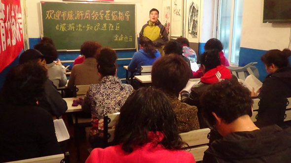 收藏2015年4月2日,椒金山街道金峰社区活动室内座无虚席,应邀而来的市旅游局高老师正在为社区内的三十余位旅游爱好者做“《旅游法》与旅游安全”的主题讲座。