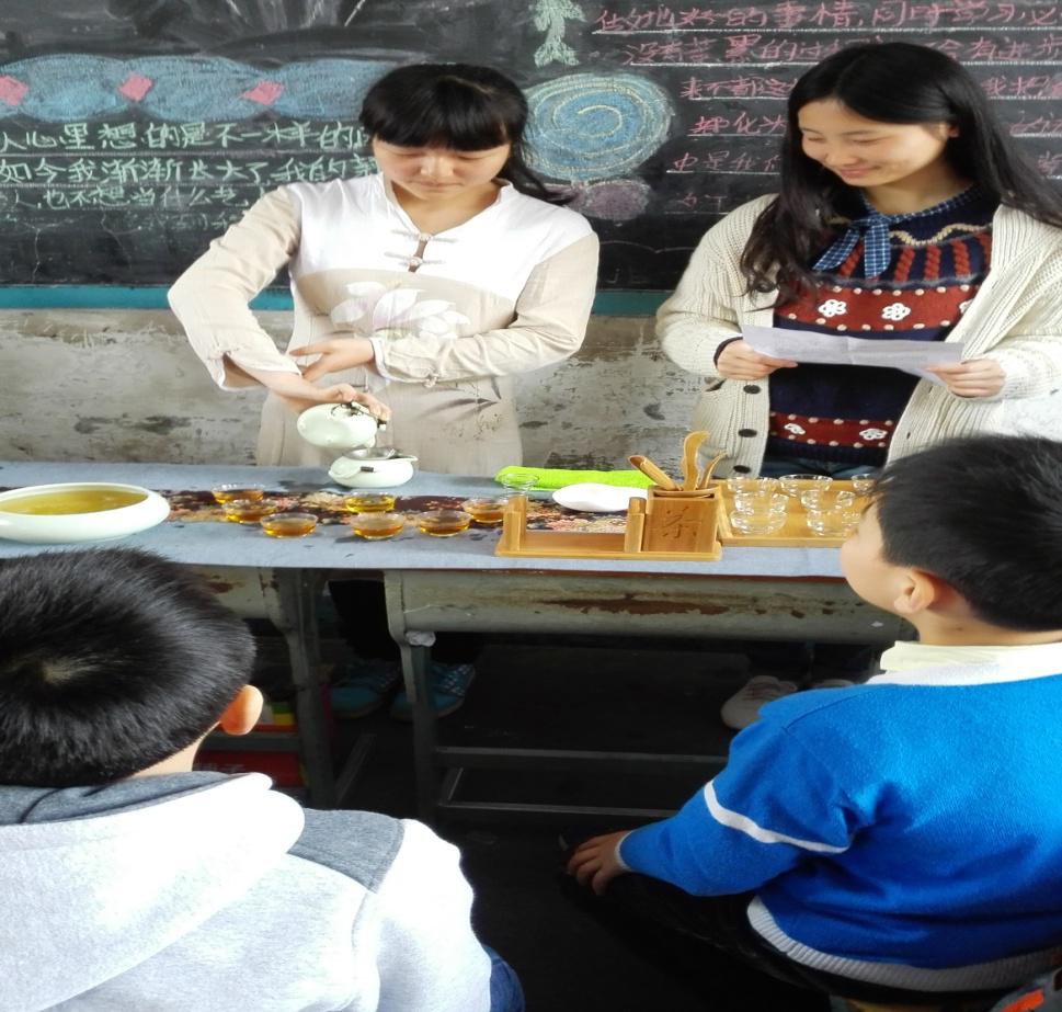 在茶艺文化展示环节,身着古典服饰的志愿者姐姐,变身古代美女,捋着飘逸的长袖沏茶,然后毕躬毕敬地送到同学们手上,举手投足之间,仿佛穿越到了古代。