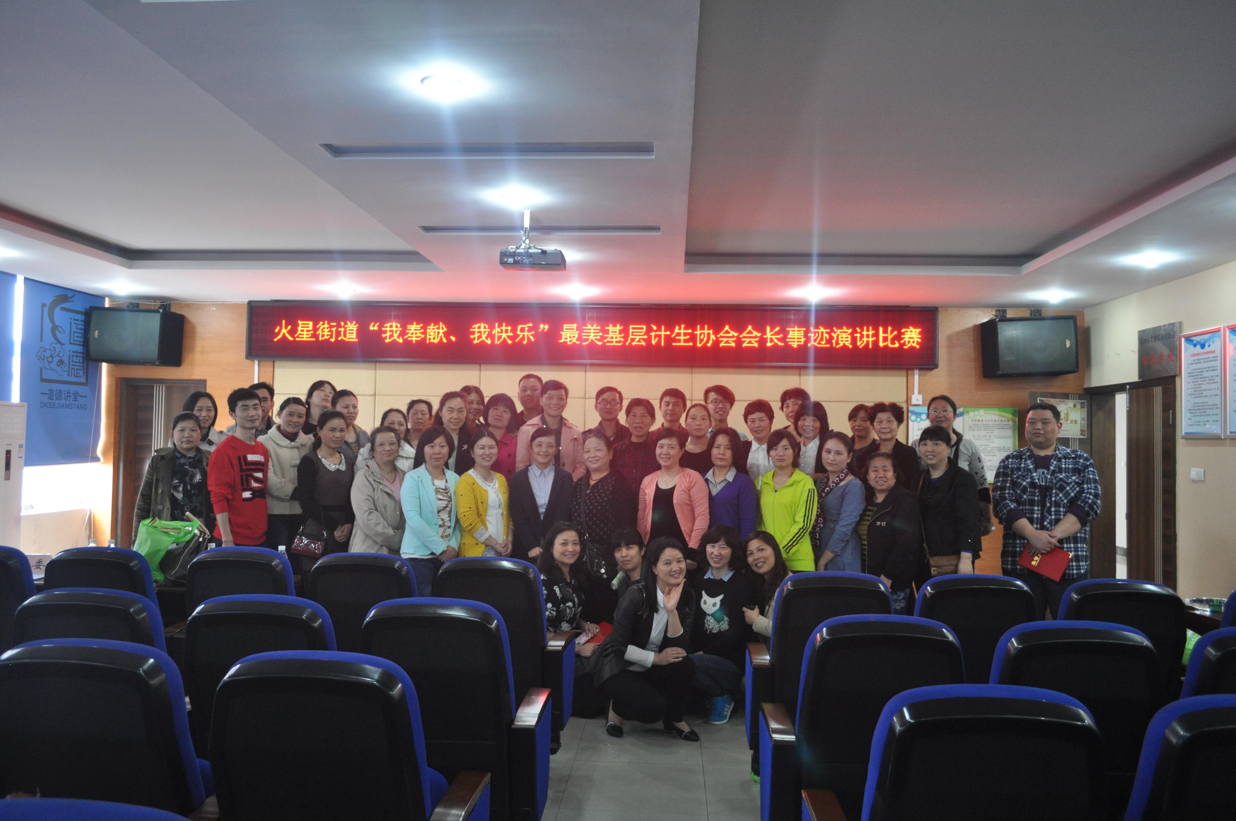 收藏 火星街道社区学校联合计生协会为了认真落实上级有关通知精神,树立以人为本的服务理念,加强领导,结合街道实际,充分发挥社区教育的自身优势和特色,调动各社区的积极性,在中国计生协成立35周年纪念日来临之际,街道计生协会组织开展了丰富多彩的宣传服务活动,加强各个社区交流,为进一步提高计生协工作水平的提升,加强协会会员相互协调和联系沟通, 4月24日在街道办事处六楼举办了一次“我奉献、我快乐”为主题的热情讴歌最美基层计生协会会长事迹的演讲比赛。