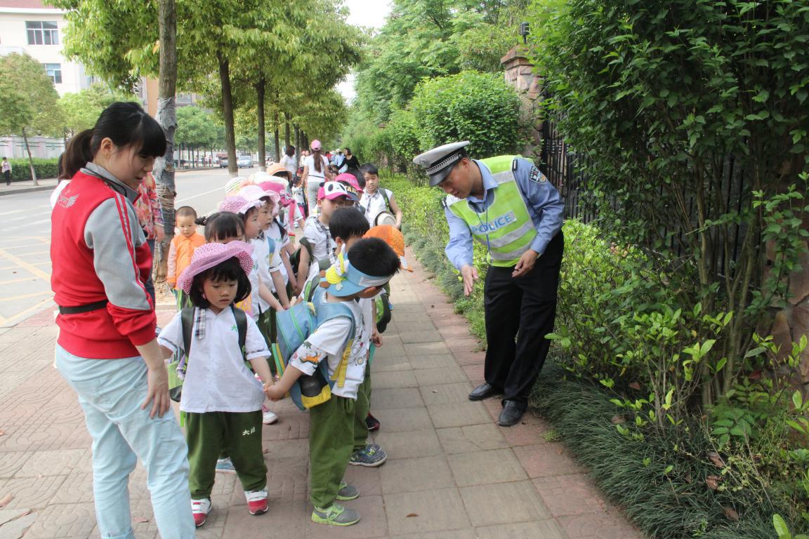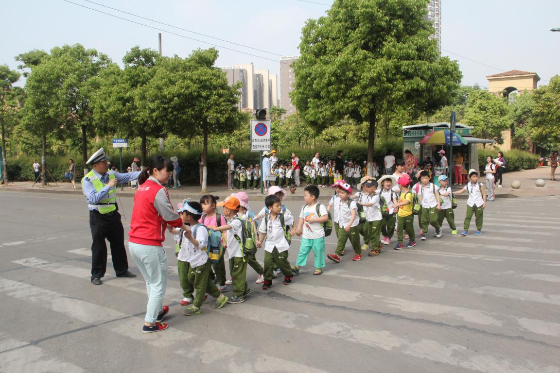 活动中,除了宝宝班的幼儿,其他幼儿都背负一定的物品,徒步从幼儿园出发前往星沙生态公园,全程约1.8公里。历时一个多小时,期间没有一个孩子哭闹,有个别喊累的孩子也在老师的鼓励下成功的到达了目的地。途中,长沙县交警大队的两名交警站在人行通道前为小朋友讲解基本的交通知识,并现场指挥小朋友通过马路。