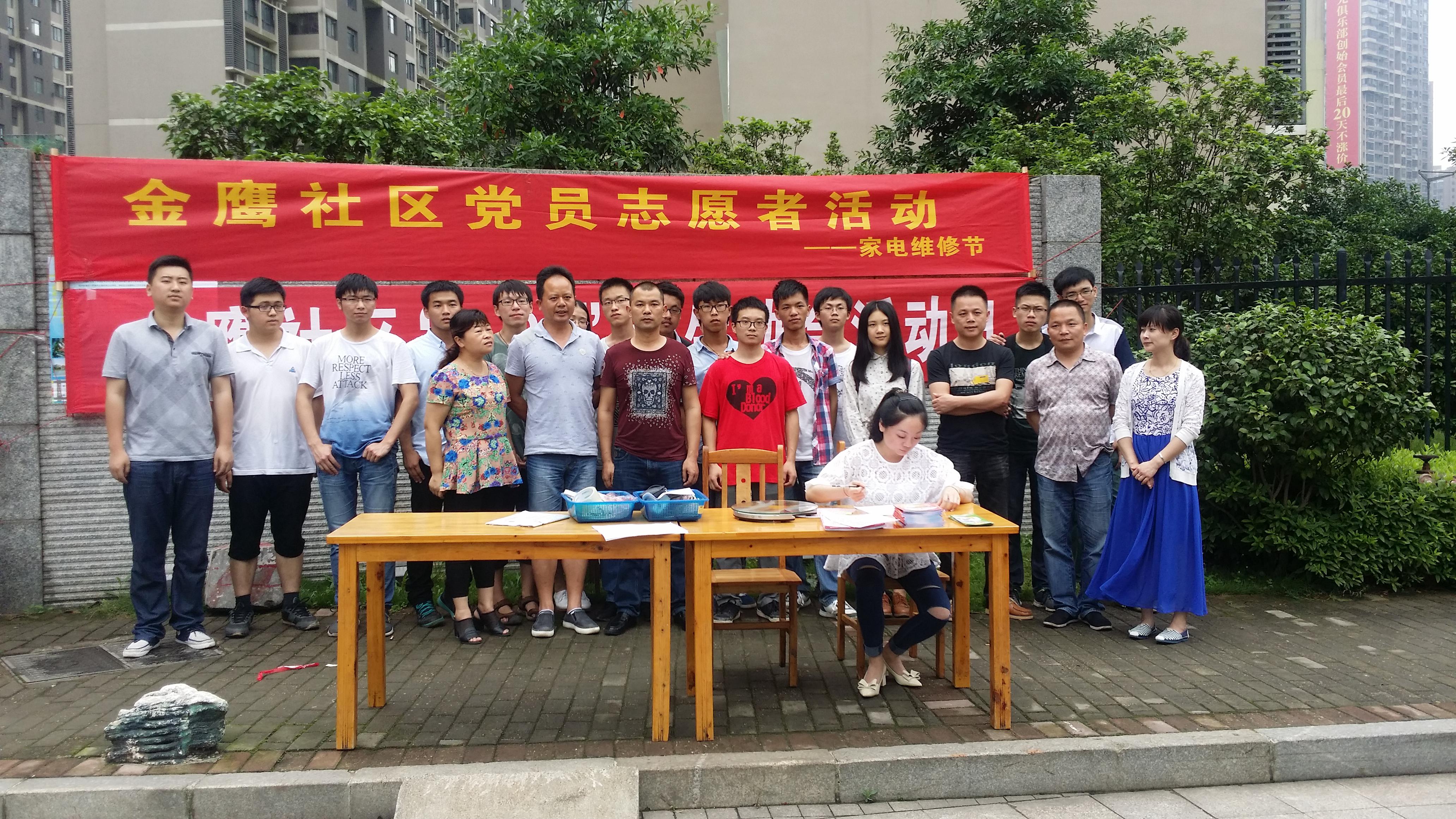 下午2点,志愿者们和社区工作人员赶到现场进行布置。居民朋友纷纷拿出闲置不能用的电饭锅、电磁炉、台灯、电水壶、电吹风等前来维修。志愿者们认真查看,仔细检修,遇到不懂的问题相互商量,耐心告诉居民朋友出故障的原因、需要更换的元配件等,为居民群众解决一个又一个难题。 “这些小孩真是好样的,给我们这些不会修理家电的居民解决了不少难题!”住在金鹰小区的刘阿姨向志愿者们竖起了大拇指。
