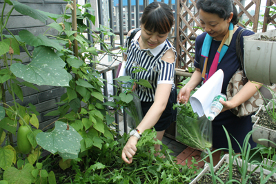 会后,各示范教学点负责人集中参观了位于社区大学楼顶的生态菜园示范总基地。