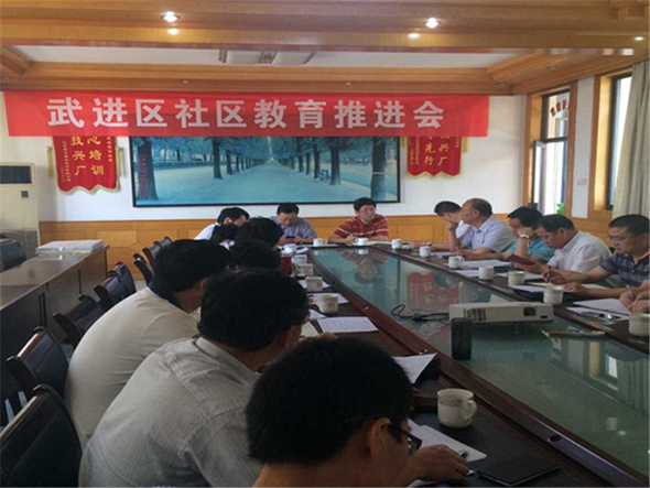 收藏 为扎实推进武进区2015年社区教育工作,进一步提高社区教育工作的实效性,6月5日,武进区社区教育工作推进会议在武进社区学院二楼会议室顺利召开。会议由武进区教育局职社科副科长朱溪源主持,武进区教育局副局长钱文玉、武进开放大学副书记沈文娟、武进社区学院院长言俊、武进区各镇(街道)社区教育中心负责人参加了会议。
