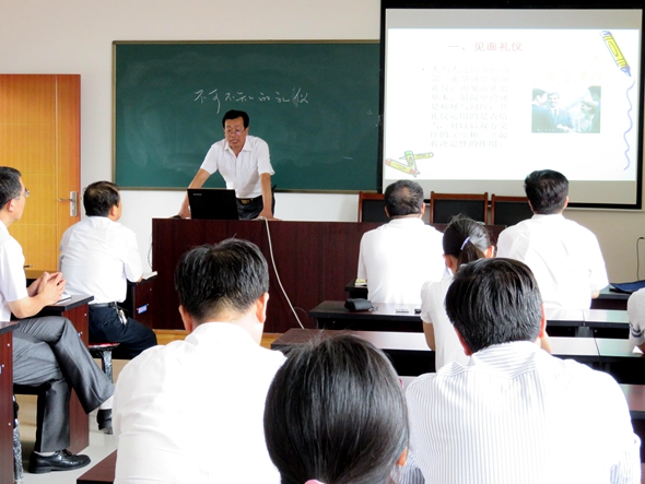 本次培训由分院丛玉山老师作题为《不可不知的礼仪》的专题讲座,培训班结合工作生活实际,从见面礼仪、乘车礼仪、中餐礼仪和仪容礼仪四个方面展开,讲述了乘车礼仪、着装仪容、行为举止、礼节礼貌、待人接物等方面的服务标准,充分体现了“实际、实效、实用”的培训原则。