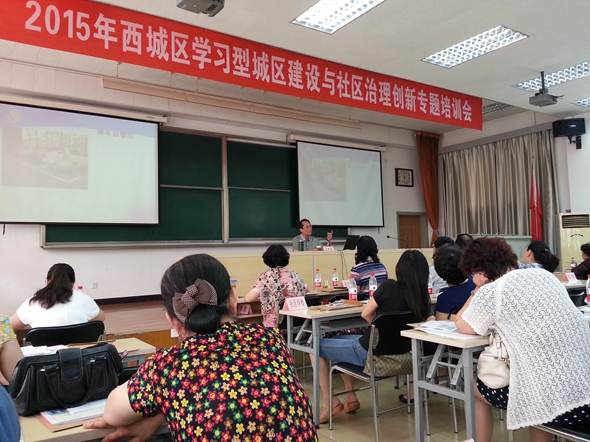 西城区教委副主任童薇在讲话中指出,西城区作为北京市学习型城市建设工作示范区,在推进学习型城区建设工作中大力推进学习型先进社区和学习型示范社区建设。为进一步提升新常态下学习型城区建设的内涵和品质,总结社区治理成功经验,探讨并推动基层社区治理工作不断创新,西城区拟在今年下半年举办“学习型城区建设与社区治理创新”·西城论坛。马教授的讲座具有理论和实践的双重高度,为西城区进一步做好社区治理创新,加快学习型城区建设发展方式的转变进行了有益指导。西城区将深入挖掘各街道、社区、社会组织的典型经验和做法、加大宣传力度、创新工作思路、固化实践成果,从而不断夯实学习型城区建设基础,进一步推动学习型城市示范区建设工作的创新发展。西城区将以此次专题培训会为标志,正式拉开“学习型城区建设与社区治理创新”·西城论坛筹备工作的序幕。