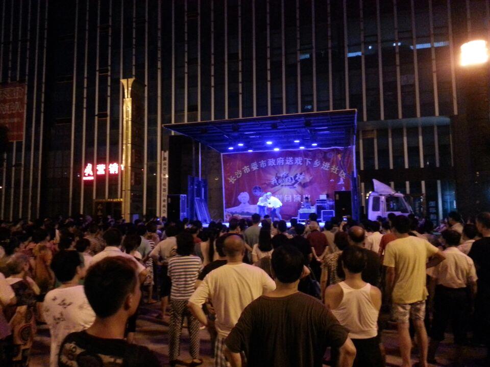 晚上7点半,凯乐国际城前坪聚集了前来观看文艺汇演的数百名社区群众。晚会演出持续了近2个小时,表演了舞蹈《长沙味道》、《相伴》,还有优美的女声独唱《金锁银锁》、《最美》以及悠扬的乐器连奏《赛马》、《浏阳河》等丰富的节目。