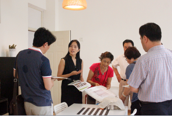 考察组成员首先参观了青羊社区教育学院区级示范性公益课程家庭烘焙体验室、茶艺体验室,并现场体验了青羊社区教育学院的“市民生态菜园”学习体验项目,了解了青羊区2015年春季学院、街道、社区公益课程开设情况及学院师资情况。在学院会议室,考察团成员观看了2014年青羊社区教育学院社区教育纪实片《聆听青羊人的“读书”声》。青羊社区教育学院张俊辉院长做了题为《统筹推进市民教育“三类中心”建设,努力推动民生工作方式创新》的专题交流,以青羊区根据区情发展社区教育为背景,从青羊区顶层设计区域统筹,打造“构建“社区学习中心”、打造社区教育学习载体,创建“学校学习中心”、拓展社区教育服务功能,创设“社会学习中心”、扩展社区教育服务范围为重点,通过“三中心”平台建设实施打造的”“社区少年宫”、“市民阳台生态菜园”“等实例,系统的将青羊区“三类中心”服务社区市民的具体做法、措施及实践成效向考察团成员做了交流,受到了北京教育同仁的一致好评。