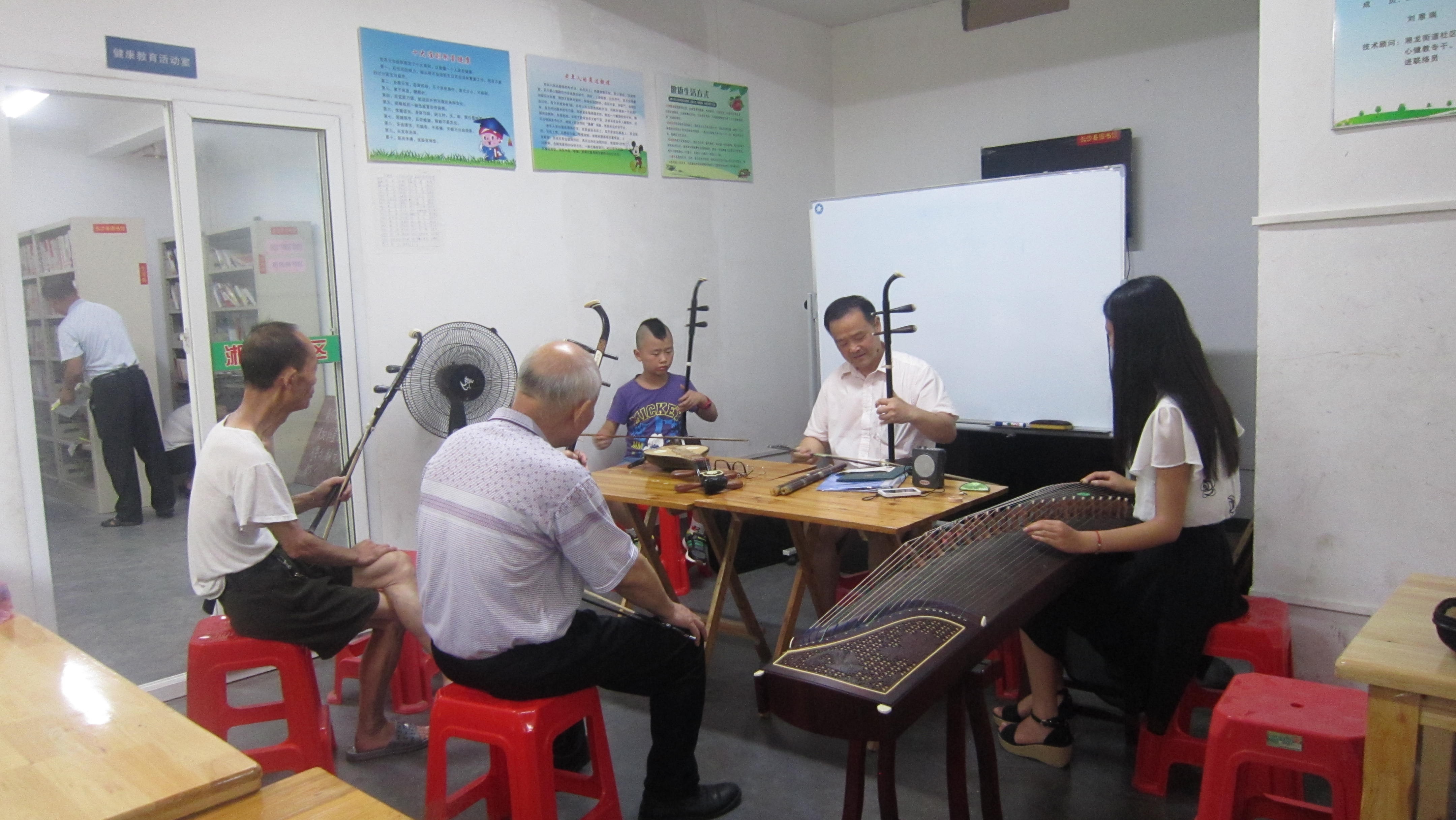 7月23日九点,周迈称周老师和一群热爱乐器的退休老师们利用自己所长免费开始了一场音乐课。课上周老师首先介绍了二胡、柳琴、古筝、笛子、萨克斯等乐器并演奏了《牧民新歌》、《浏阳河》、《红河谷》、《春到沂河》等,孩子们听得津津有味,最后还进行了一个大合奏,演出完毕,大家纷纷鼓掌。小区内很多热爱艺术的退休人员,这堂课不仅陶冶了学生的情操同时也让退休老干部感到老有所乐。