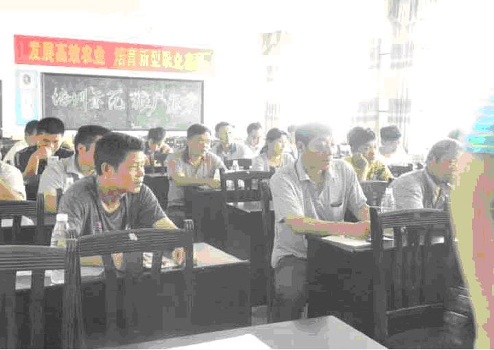 2015年6月15日上午九点,桥驿镇社区学校举办的黑山羊养殖技术培训班开班了,学校聘请湖南省农大动科院龙江松教授主讲了《黑山羊品种特性及市场前景分析》、《羊舍科学化,标准化建设》,五十多名养殖户参加了学习。他们听课非常认真,有的边听边写,课后和教授讨论,交流怎样防疫羊的疾病等,大家一致认为今天学习受益匪浅。