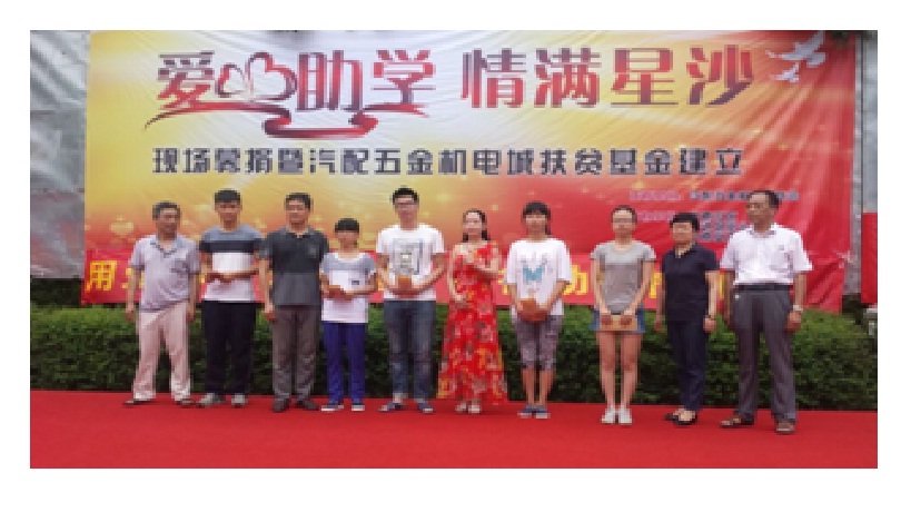 8月15日上午,由中南汽车世界汽配五金机电城商会主办,中南社区学校、博达物业有限公司、中南社区业主委员会共同承办的“爱心助学,情满中南”捐资助学活动在中南汽车世界双拥广场隆重举行。长沙县工商联主席李楚萍,湘龙街道副主任胡晓明,汽配五金机电城商会会长、业委会主任童铁刚,中南社区党支部书记冯娟,博达物业总经理曾华平等出席了本次活动,并给寒门学子赠与了爱心善款。