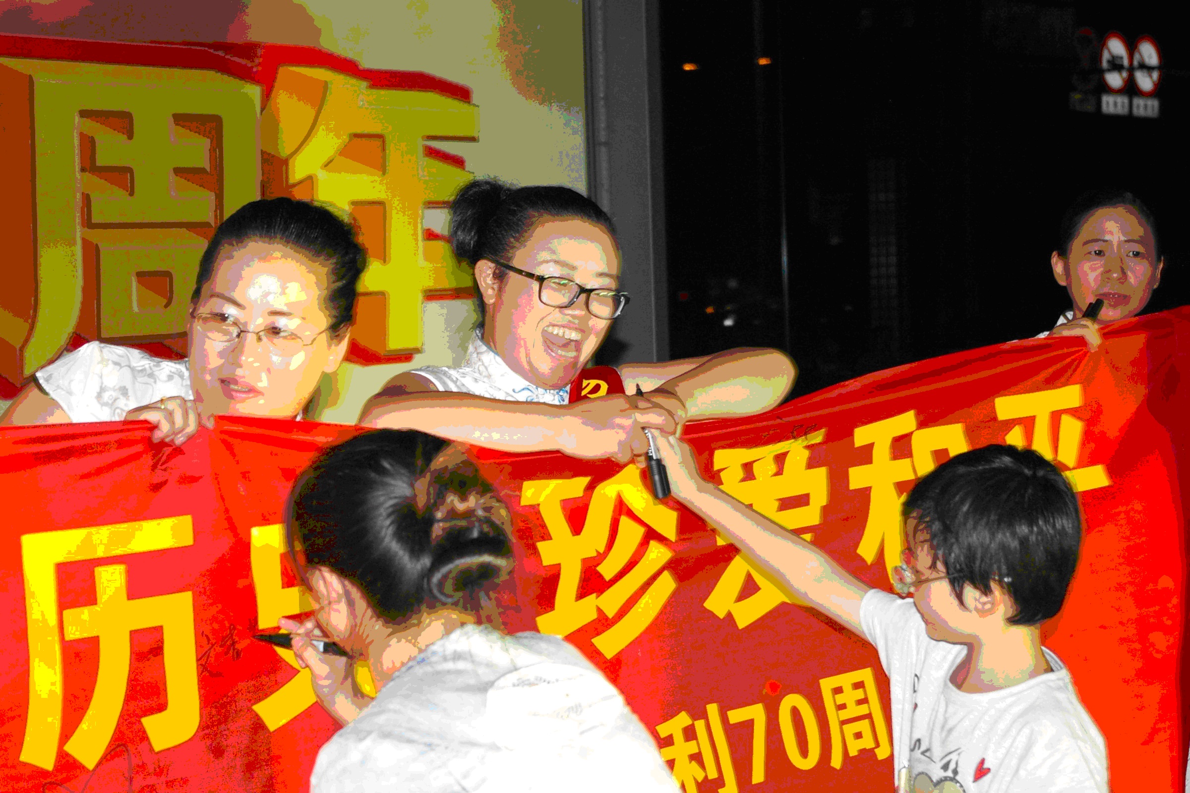 活动接近尾声,所有参加活动人员在“勿忘国耻,缅怀先烈;铭记历史,珍爱和平”大型横幅上签名留念。
