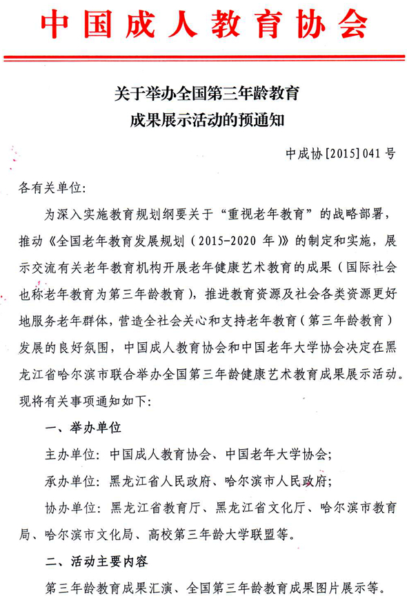 中成协:关于举办全国第三年龄教育成果展示活动的预通知