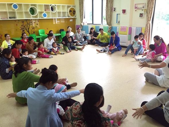 活动一开始,志愿者李珊珊便向宝宝和家长介绍了本学期早教活动的具体安排。为了让更多的宝宝享受到优质的早教活动,给社区居民带去更多的福利,本学期,北幼将精心挑选出10名教育志愿者分批参与每周的公益早教服务。本周二就早教活动的开展进行了专题培训,今天又到早教现场进行观摩研讨,目的就是丰富志愿者的教学经验。今后她们将利用自己的休息时间,陆续为社区婴幼儿家庭带去精彩的课堂。